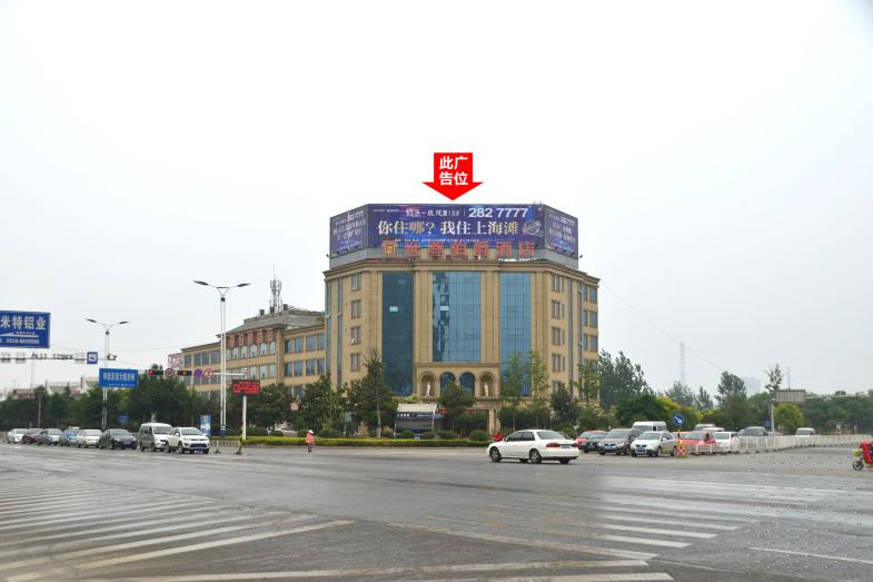 通达南路与湖北路交汇处世尊伯爵酒店楼顶大牌